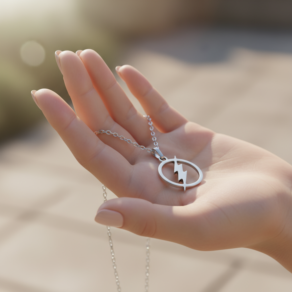Alooya Şimşek – The Flash Kolyesi, zamana meydan okuyan simgesel tasarımıyla hem modern hem de cesur bir duruş sergiliyor. Antik gümüş kaplaması, parlak yüzeyi ve keskin hatlarıyla koleksiyonlara enerji katıyor.Zamak malzemeden üretilen kolye ucu 3 cm x 3 cm boyutlarındadır ve 3,97 gram ağırlığındadır. 60 cm uzunluğundaki ithal silver renk düz ezme zincir seçeneği ile sunulur. Unisex tasarımı sayesinde kadın ve erkek kullanıcılar için uygundur. Günlük kullanıma dayanıklı yapısıyla uzun ömürlü bir aksesuardır.
