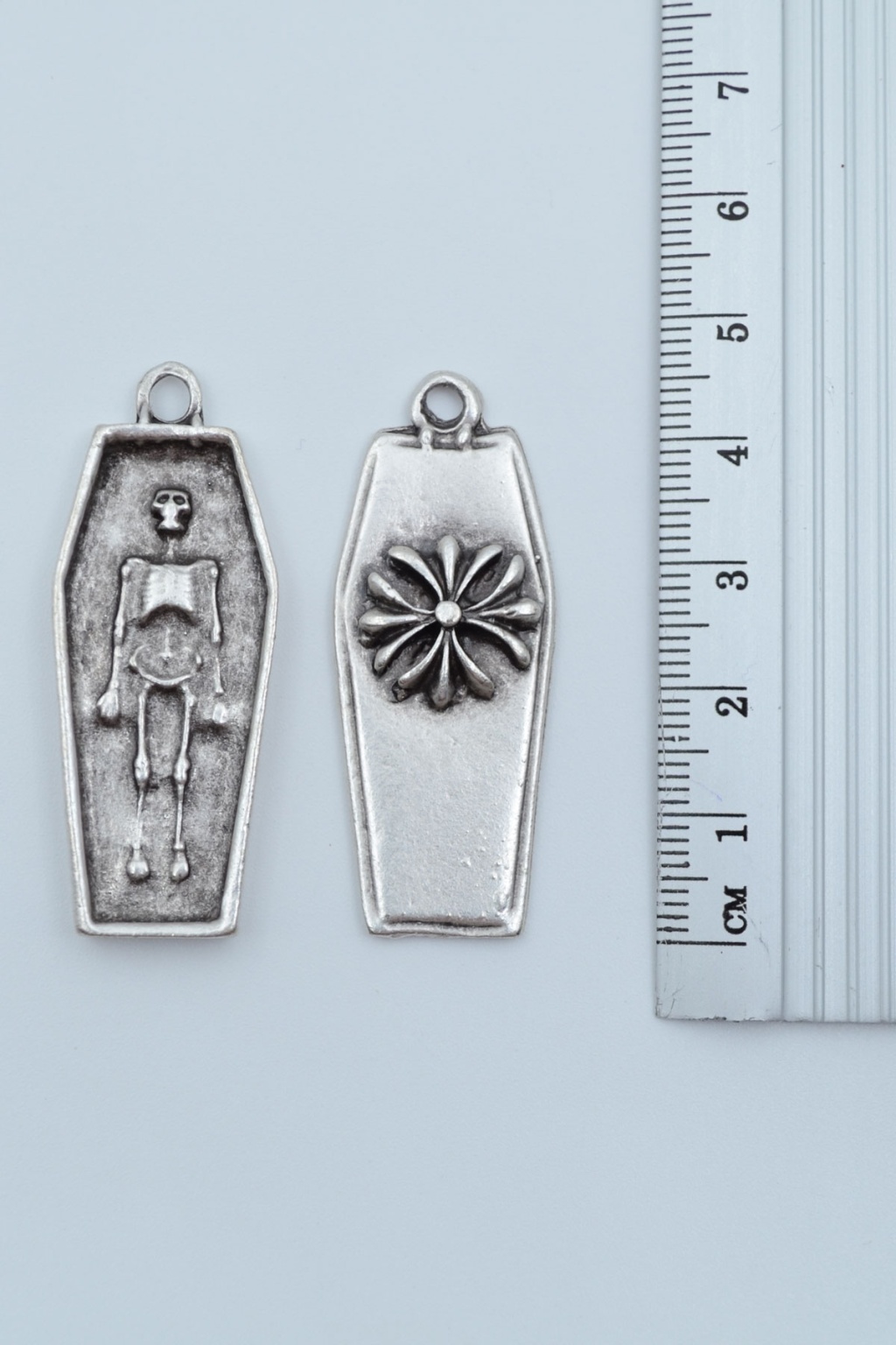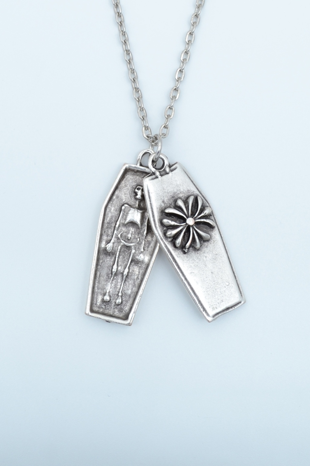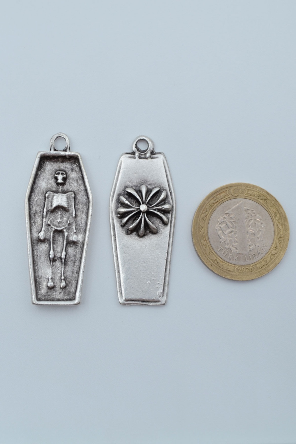 Zamak malzemeden üretilen bu Tabut - İskelet Kolye Ucu, Antik Gümüş Kaplamasıyla şıklık ve dayanıklılık sunar.4,6 cm x 1,9 cm boyutları ve 14,06 gr ağırlığıyla koleksiyonlar için özel bir parça olan tasarım, 60 cm uzunluğunda İthal Silver Renk Düz Ezme Zincir ile birlikte gelmektedir. Hem modern hem de klasik tarzlara uyum sağlayan bu kombinasyon, kullanıma hazır şık bir aksesuar olarak öne çıkıyor. Sağlam Düz Ezme Zincir yapısı ile günlük kullanımda pratiklik ve uzun ömürlülük vadeden bu set, hem erkek hem de kadın takı severler için ideal bir seçimdir.
