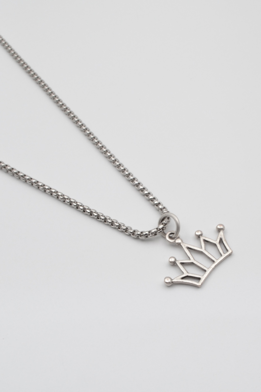 **Taç **, Örme Zincir Kolye ürün grubuna ait, Antik Gümüş Kaplama malzemeden üretilmiştir. Bu özel parça, 1,8 cm yüksekliğe ve 2,9 cm genişliğe sahiptir. Antik Gümüş Kaplama kaplaması ile göz alıcı bir görünüm sunar ve Unisex için tasarlanmıştır. 60 cm uzunluğundaki zinciriyle tamamlanmıştır.
