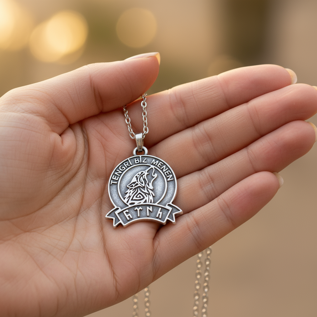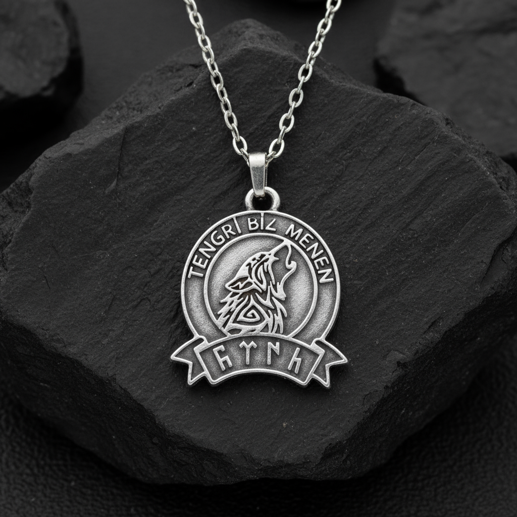 Alooya Tengri Biz Menen Göktürkçe Kolyesi (Düz Zincir)
