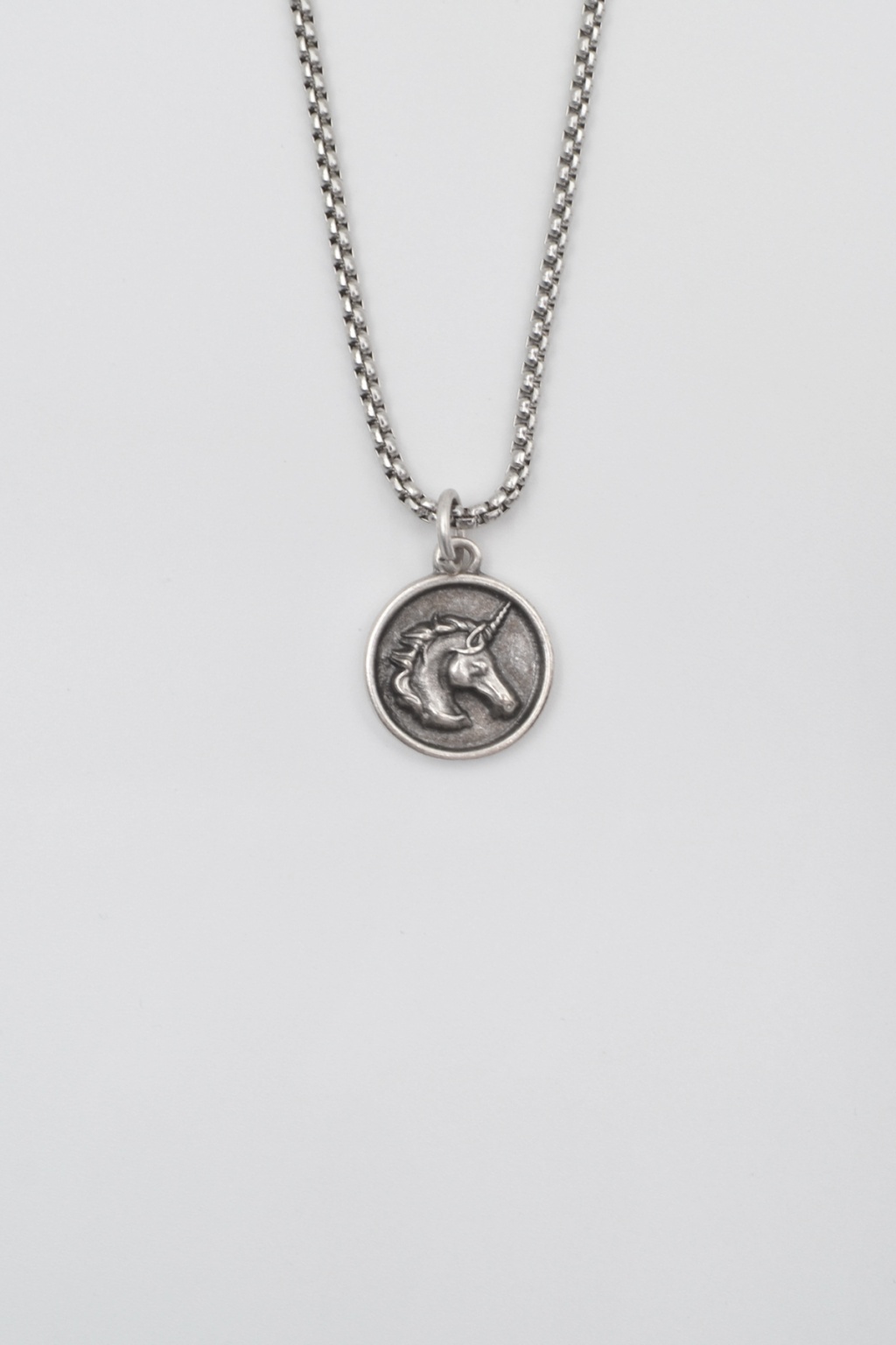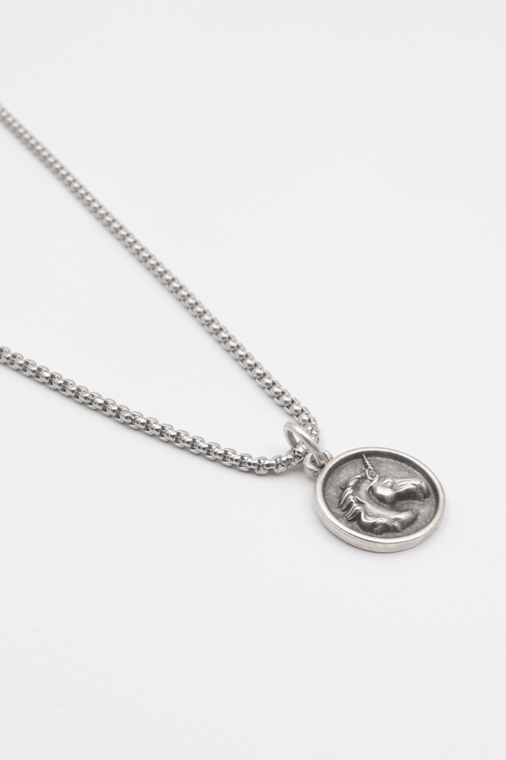 **Unicorn - Tekboynuz **, Örme Zincir Kolye ürün grubuna ait, Antik Gümüş Kaplama malzemeden üretilmiştir. Bu özel parça, 2,2 cm yüksekliğe ve 1,8 cm genişliğe sahiptir. Antik Gümüş Kaplama kaplaması ile göz alıcı bir görünüm sunar ve Unisex için tasarlanmıştır. 60 cm uzunluğundaki zinciriyle tamamlanmıştır.