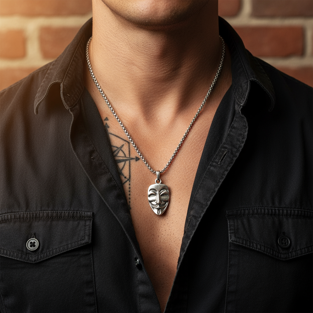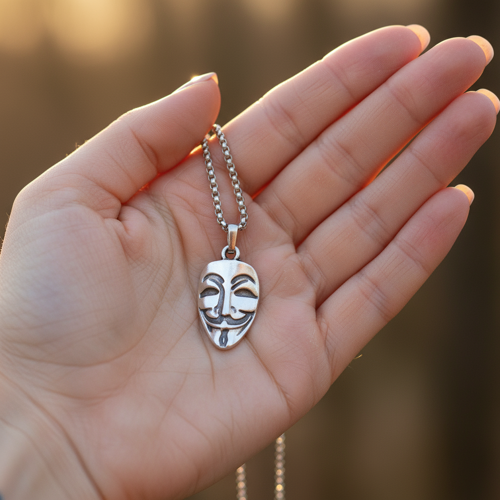 Direnişin, özgürlüğün ve adalet arayışının simgesi haline gelen V For Vendetta Maskesi, artık cesur bir tarzın parçası. Bu özel kolye; gücü, direnişi ve bireyselliği yansıtan anlamlı bir sembol taşıyor. Antik gümüş kaplamasıyla dikkat çeken tasarım, sade ama etkileyici bir görünüm sunuyor. Zamak malzemeden üretilen bu anlamlı kolye ucu; 3,2 x 1,8 cm boyutları ve 4,6 gram ağırlığıyla koleksiyonlar için güçlü bir detay sunar. 60 cm uzunluğundaki ithal ÖRME zincir, hem konforlu hem de uzun ömürlü bir kullanım sağlar. Hem kadınlar hem de erkekler için unisex tasarımıyla, tarzını isyanla şekillendirenler için mükemmel bir tamamlayıcı aksesuar.