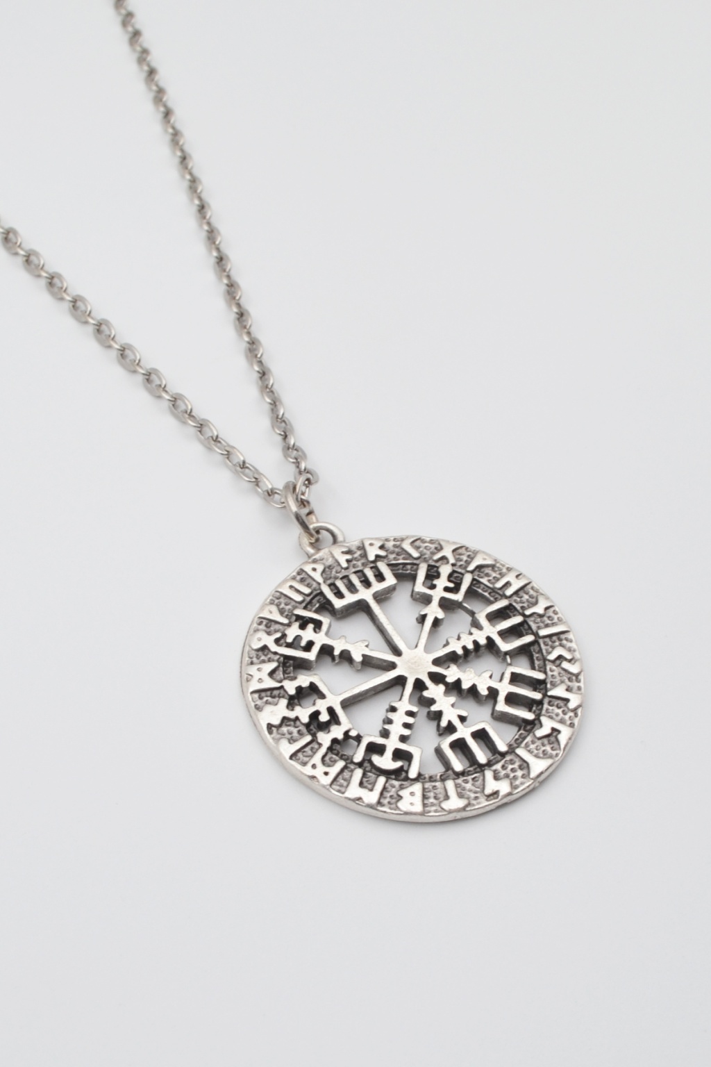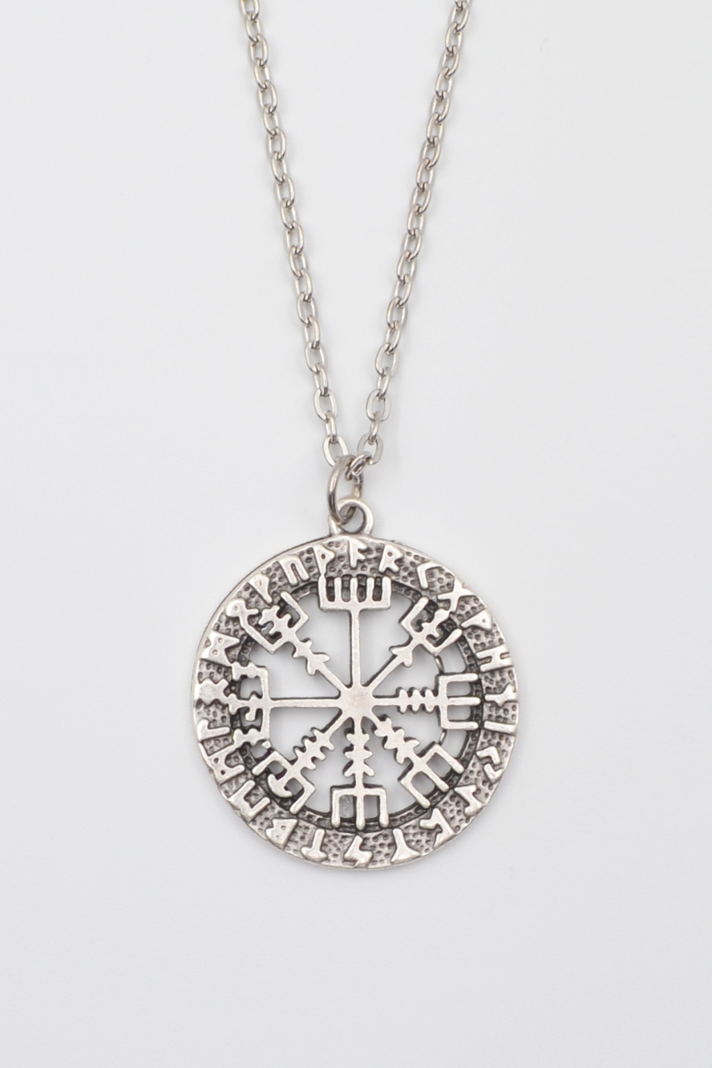 Yolunuzu Aydınlatan Şıklık: Viking Pusula (Vegvisir) Kolye (Düz Ezme İthal Zincirli)