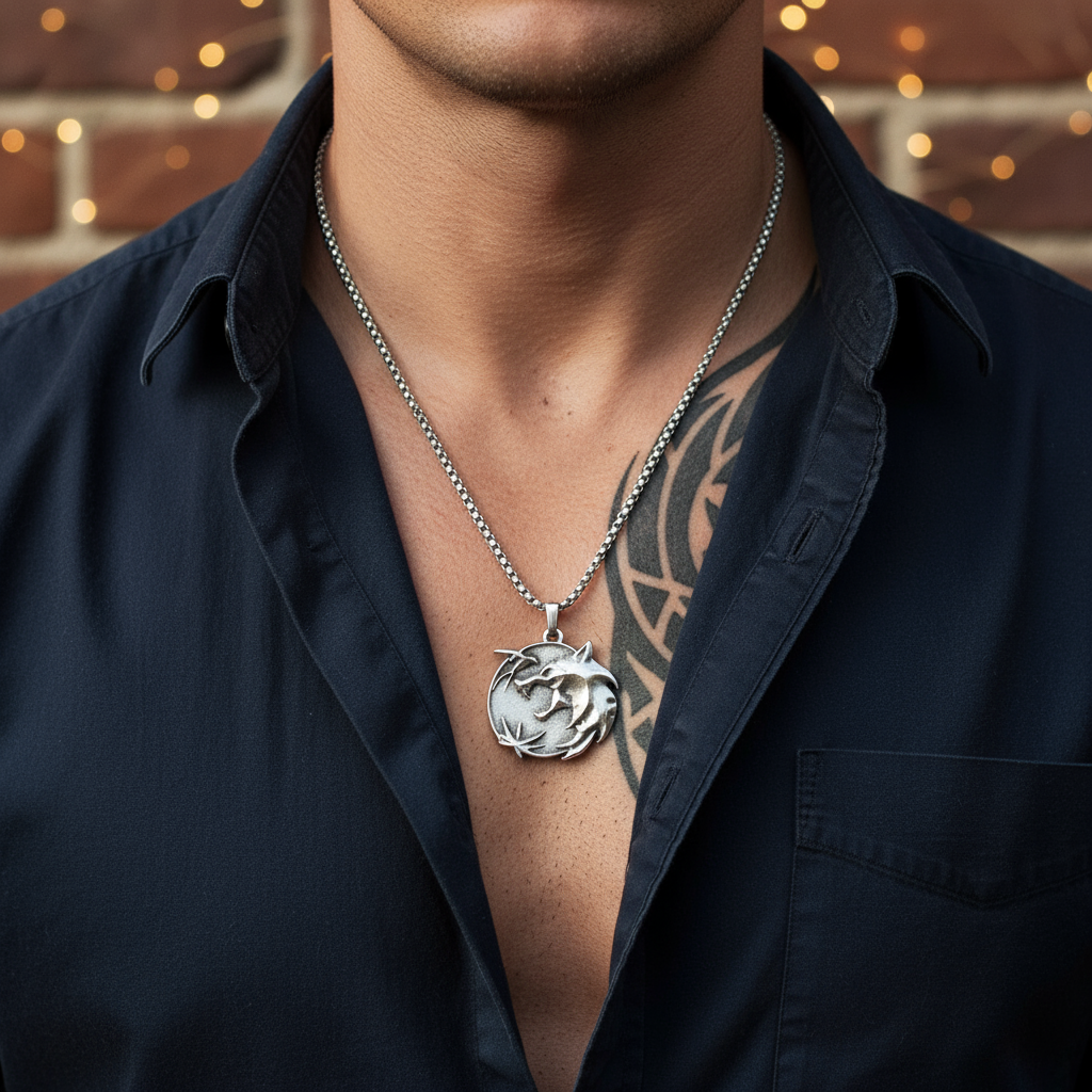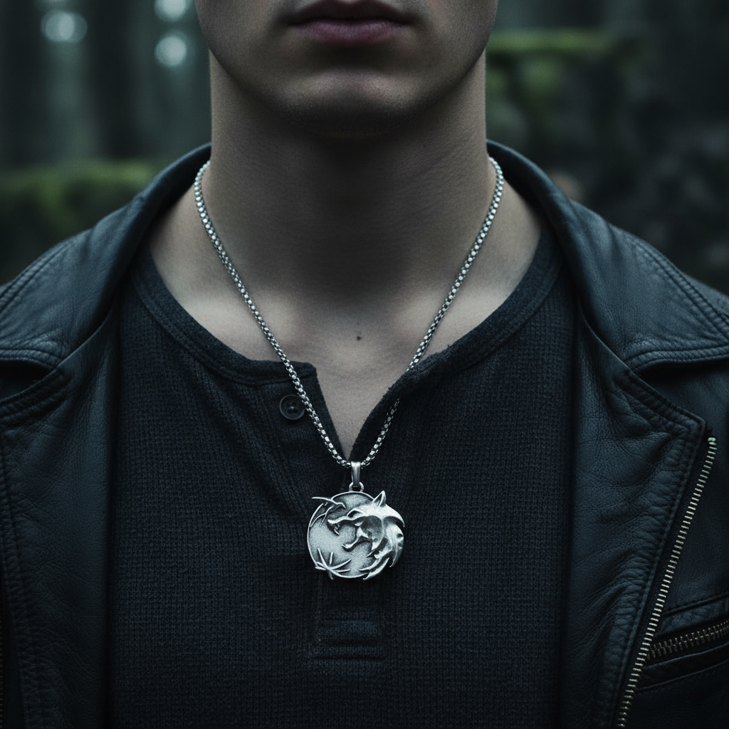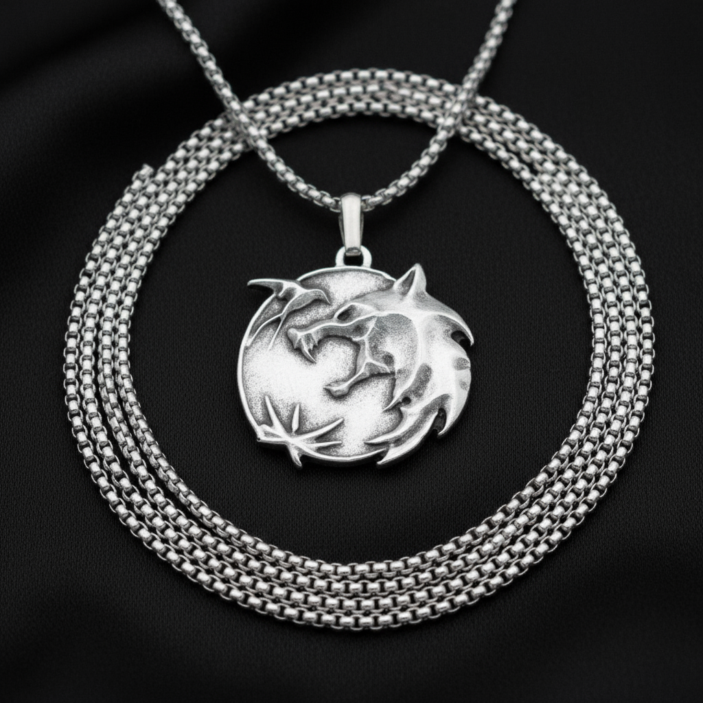 Büyülü Witcher 3 Madalyon Gümüş Kaplama Örme Zincir Kolye