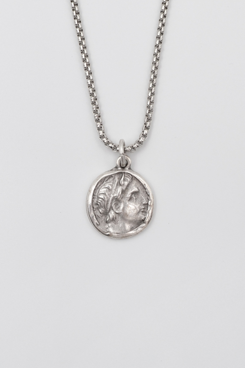 **Yunan Antik Makedonya Kralı Büyük İskender **, Örme Zincir Kolye ürün grubuna ait, Antik Gümüş Kaplama malzemeden üretilmiştir. Bu özel parça, 2,5 cm yüksekliğe ve 2,1 cm genişliğe sahiptir. Antik Gümüş Kaplama kaplaması ile göz alıcı bir görünüm sunar ve Unisex için tasarlanmıştır. 60 cm uzunluğundaki zinciriyle tamamlanmıştır.